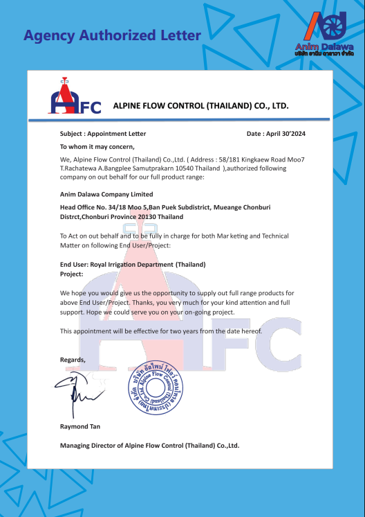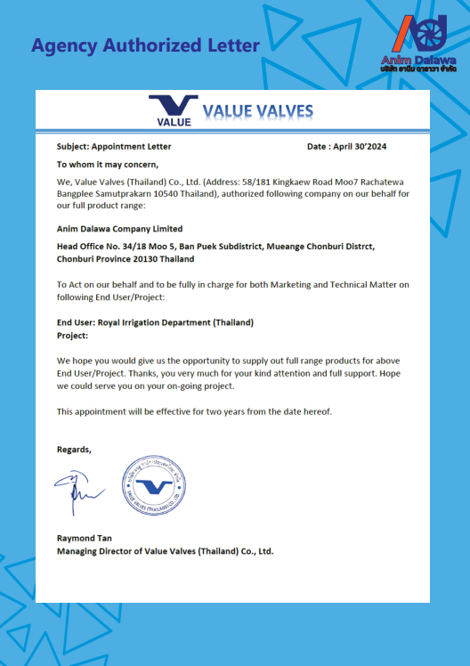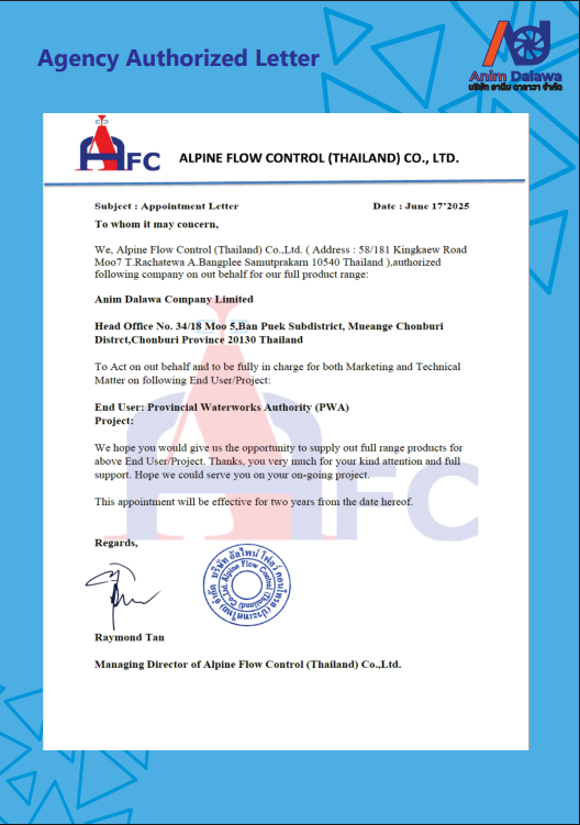 บริษัท อานีม ดาลาวา จำกัด เริ่มธุรกิจนำเข้าส่งออกอุปกรณ์ประปา และประตูน้ำ เรามีความมุ่งมั่นอย่างยิ่ง ในการจัดหาวัสดุอุปกรณ์ที่ทันสมัยและได้มาตรฐานสากลเพื่อตอบสนองความต้องการของลูกค้าในการใช้งานในรูปแบบต่างๆ